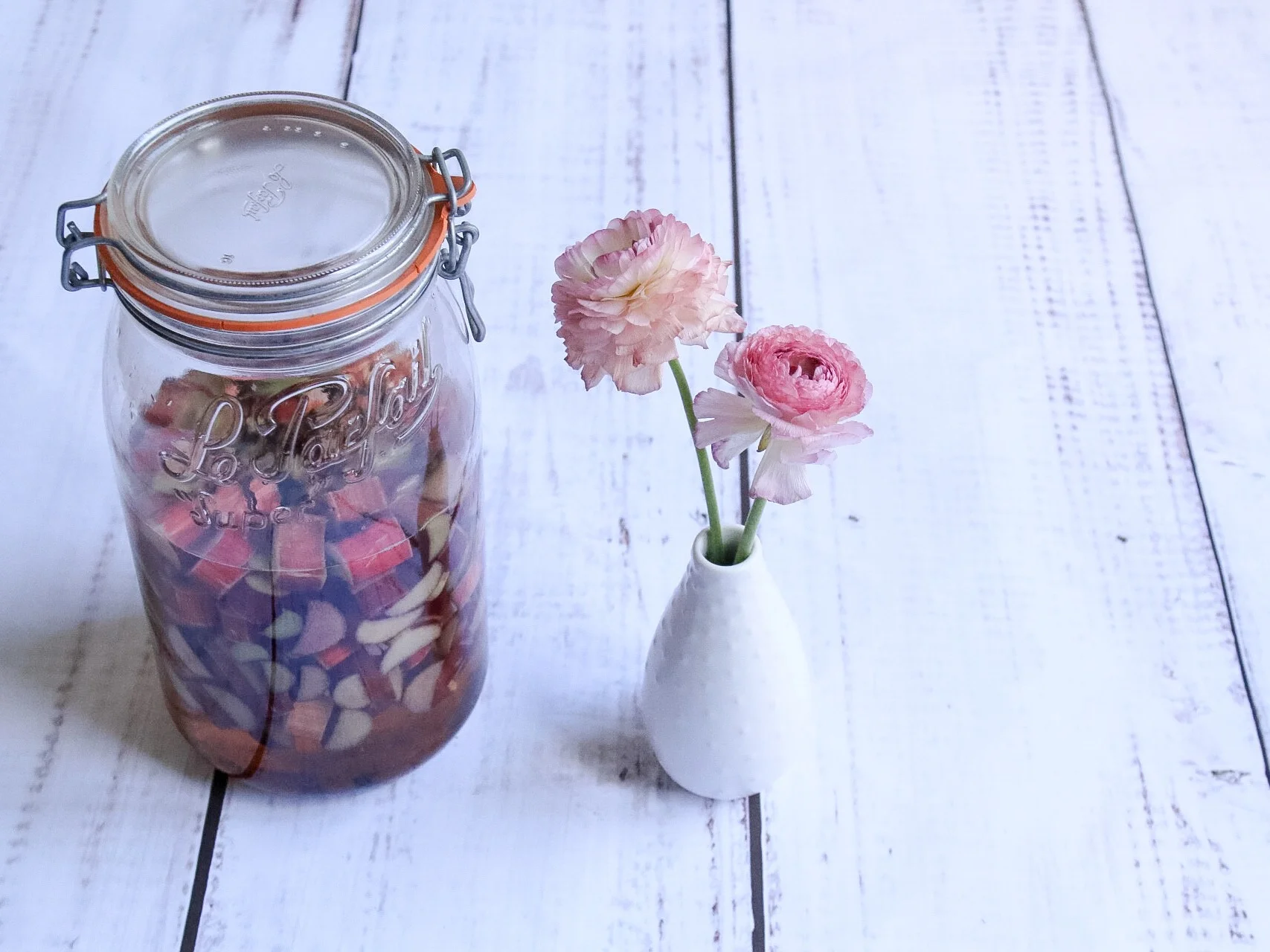 I love making homemade liqueurs, they are both fun and simple. Experimenting with different types of fruits, nuts or even coffee can be a great way to hone in on your cocktail skills. I've had a few cocktails made with rhubarb, mainly with a simple syrup that has been enhanced with fresh rhubarb, then gin or vodka is added to the mix. I thought why not make a rhubarb liqueur instead? This is the rendition I thought tasted best. I chose not to add a simple syrup to this liqueur, I prefer to adjust the sweetness when I make the cocktail instead, also the addition of Solerno adds a sweet flavor. Ultimately this is the perfect liqueur to have on hand for Springtime brunches or the start to an evening alfresco with friends.